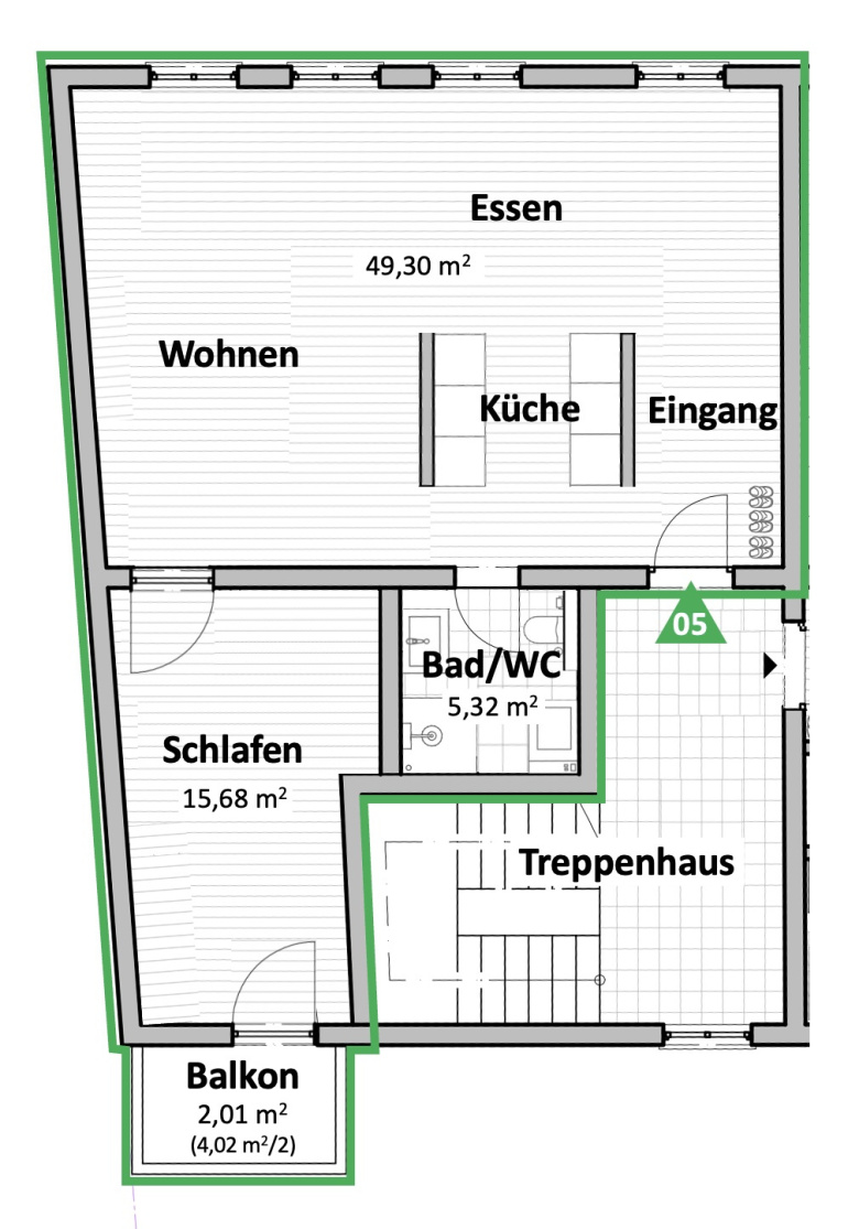Die großzügige 2-Zimmer Wohnung im 2. Obergeschoss (West) mit ca. 72,31 qm überzeugt durch eine günstige Raumaufteilung. Die Wohnung verfügt über eine moderne Einbauküche und einen Balkon. Der offene Wohn-/Essbereich bildet das Herzstück der Wohnung. Das Bad ist funktional geschnitten und bietet zusätzlich Platz für eine Waschmaschine (Anschlüsse sind vorhanden).